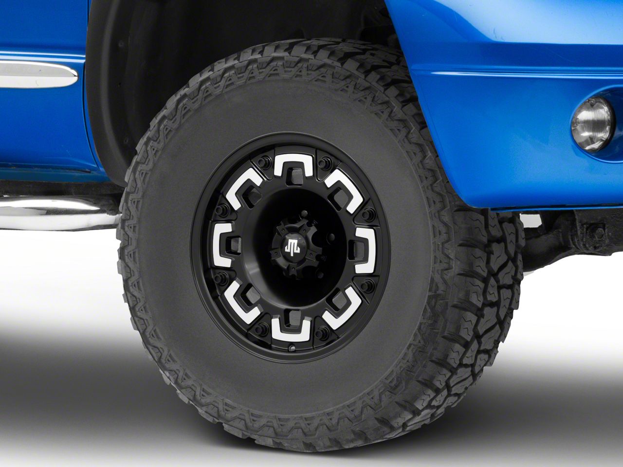 Application. This Mammoth Boss Satin Black Machined 5-Lug Wheel; 17x9; -6mm Offset, bolt pattern of nan, is designed to enhance alignment and driving stability, ensuring a perfect fit with the vehicle model. Specifically designed to fit 2002-2008 RAM 1500, Excluding Mega Cab models, this wheel's specifications contribute to a seamless alignment and stable driving experience by ensuring the wheel fits perfectly within the vehicle's wheel well, reducing the risk of rubbing issues and optimizing handling characteristics. Sold individually.