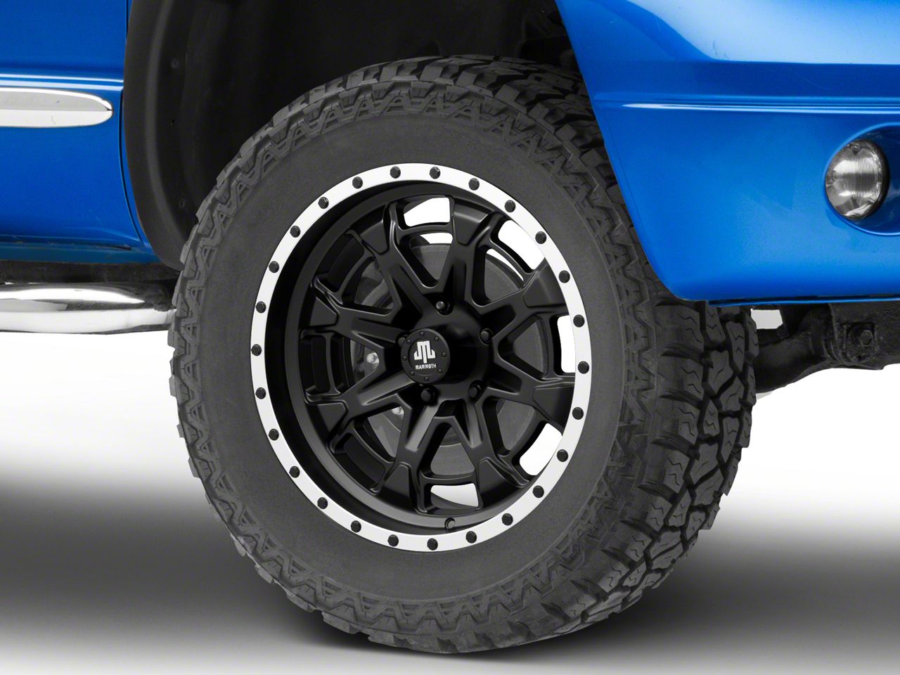 Mammoth Split 16 Beadlock Wheel. Mammoth's Split 16 Beadlock Wheel features a military inspired 8-spoke design with a inner ring that creates 16 individual windows. The simulated bead lock bolts around the outer lip adds to the wheels rugged good looks. A branded Mammoth center cap is included. This Mammoth Wheel is perfectly suited for street and off-road applications.