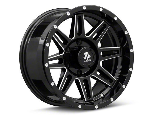 Gloss Black Finish With Machined Accents. This Mammoth Wheel features a high quality black finish with contrasting machined accents for an aggressive appearance that will make onlookers green with envy. For added protection and good looks, this Wheel is completed in a durable, gloss clear coat finish that is tough enough to stand up against the hazards of everyday driving - including road chips and pitting.
