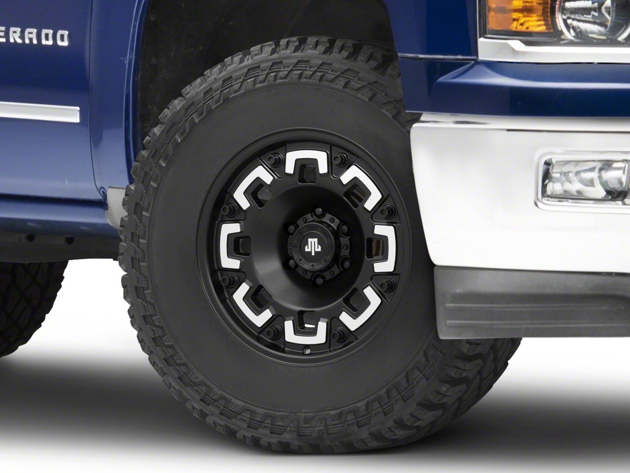 Application. This Mammoth Boss Satin Black Machined 6-Lug Wheel; 17x9; -6mm Offset, bolt pattern of nan, is designed to enhance alignment and driving stability, ensuring a perfect fit with the vehicle model. Specifically designed to fit 2014-2018 Silverado 1500 models, this wheel's specifications contribute to a seamless alignment and stable driving experience by ensuring the wheel fits perfectly within the vehicle's wheel well, reducing the risk of rubbing issues and optimizing handling characteristics. Sold individually.
