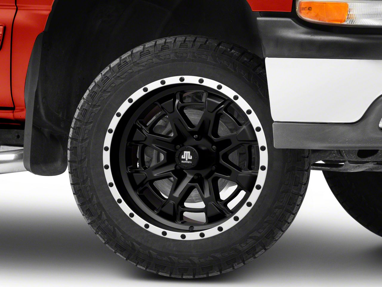 Mammoth Split 16 Beadlock Wheel. Mammoth's Split 16 Beadlock Wheel features a military inspired 8-spoke design with a inner ring that creates 16 individual windows. The simulated bead lock bolts around the outer lip adds to the wheels rugged good looks. A branded Mammoth center cap is included. This Mammoth Wheel is perfectly suited for street and off-road applications.