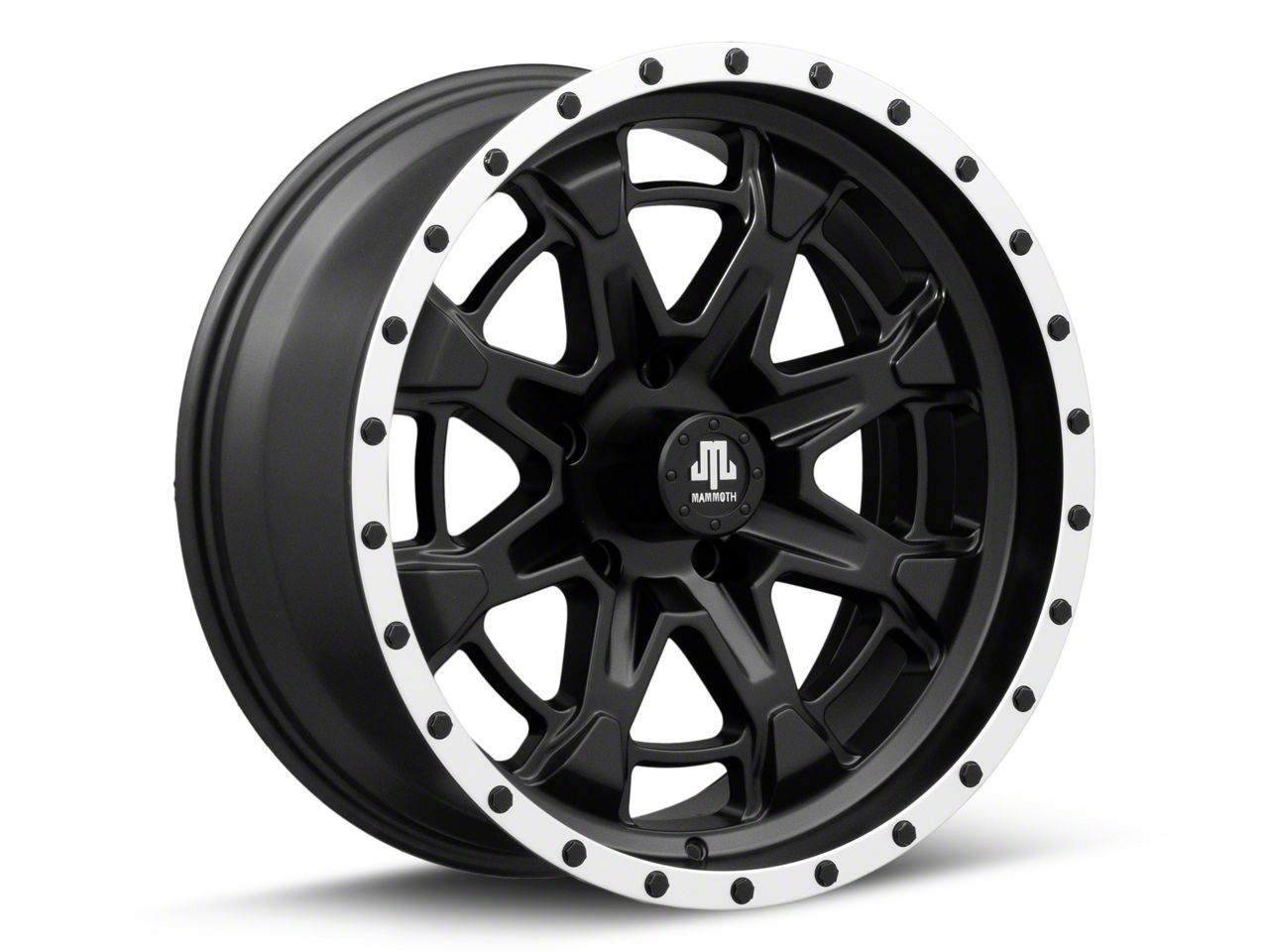 Mammoth Split 16 Beadlock Wheel. Mammoth's Split 16 Beadlock Wheel features a military inspired 8-spoke design with a inner ring that creates 16 individual windows. The simulated bead lock bolts around the outer lip adds to the wheels rugged good looks. A branded Mammoth center cap is included. This Mammoth Wheel is perfectly suited for street and off-road applications.
