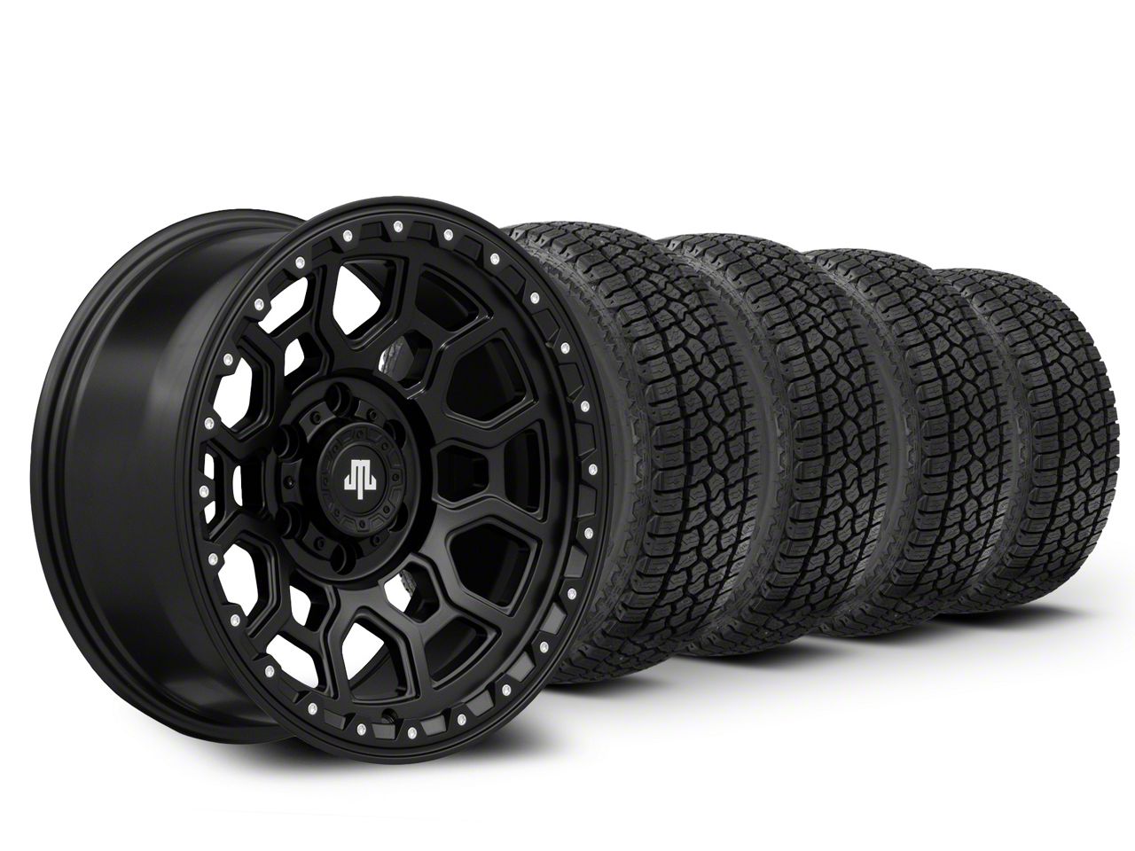 Mounted and Balanced Wheel and Tire Kit. This wheel and tire combo kit features (4) 17x9 Mammoth Hunter Satin Black Wheels and (4) Milestar Patagonia AT/R All-Terrain 33" - 285/70R17 tires that have been put together into an easy to buy kit that arrives to your door already mounted and balanced ready to be installed on your vehicle.