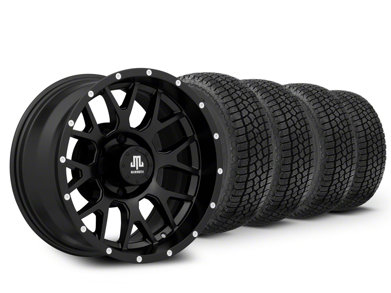 Mounted and Balanced Wheel and Tire Kit. This wheel and tire combo kit features (4) 17x9 Mammoth Beadlock Mesh Matte Black Wheels and (4) Milestar Patagonia AT/R All-Terrain 33" - 285/70R17 tires that have been put together into an easy to buy kit that arrives to your door already mounted and balanced ready to be installed on your vehicle.