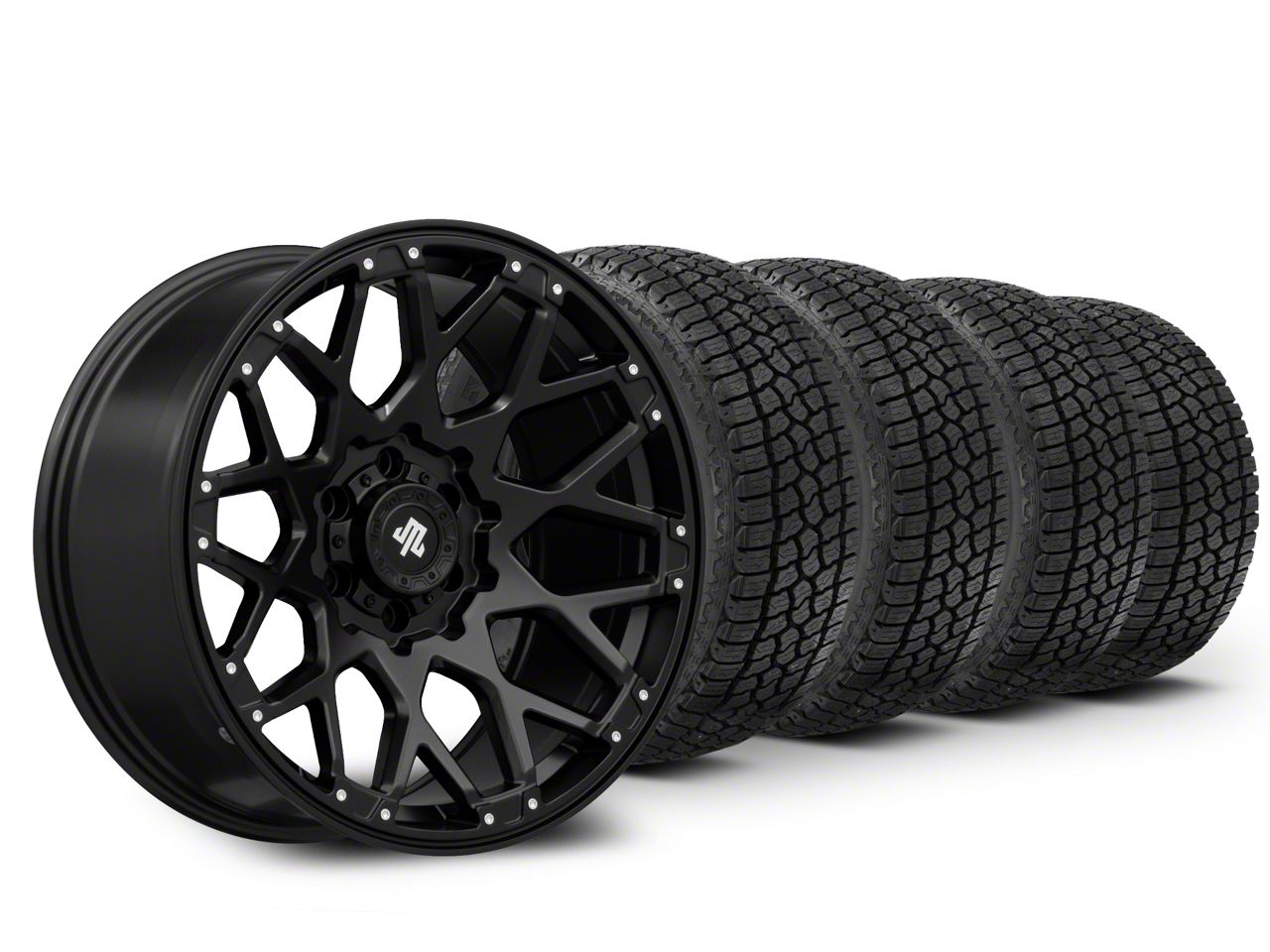 Mounted and Balanced Wheel and Tire Kit. This wheel and tire combo kit features (4) 17x9 Mammoth Vex Satin Black Machined Wheels and (4) Milestar Patagonia AT/R All-Terrain 33" - 285/70R17 tires that have been put together into an easy to buy kit that arrives to your door already mounted and balanced ready to be installed on your vehicle.