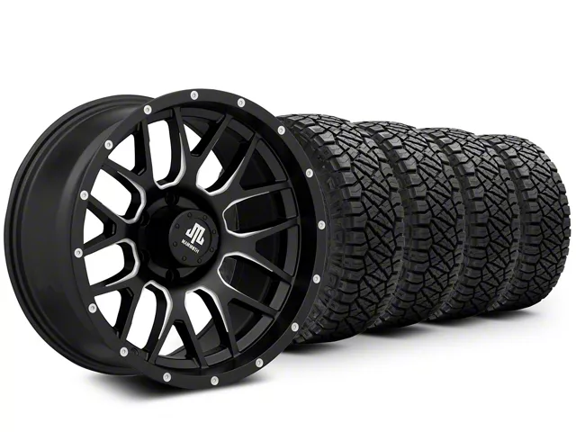 Mounted and Balanced Wheel and Tire Kit. This wheel and tire combo kit features (4) 18x9 Mammoth Beadlock Mesh Matte Black Machined 6-Lug Wheels and (4) NITTO All-Terrain Ridge Grappler A/T 275/70R18 tires that have been put together into an easy to buy kit that arrives to your door already mounted and balanced ready to be installed on your vehicle.