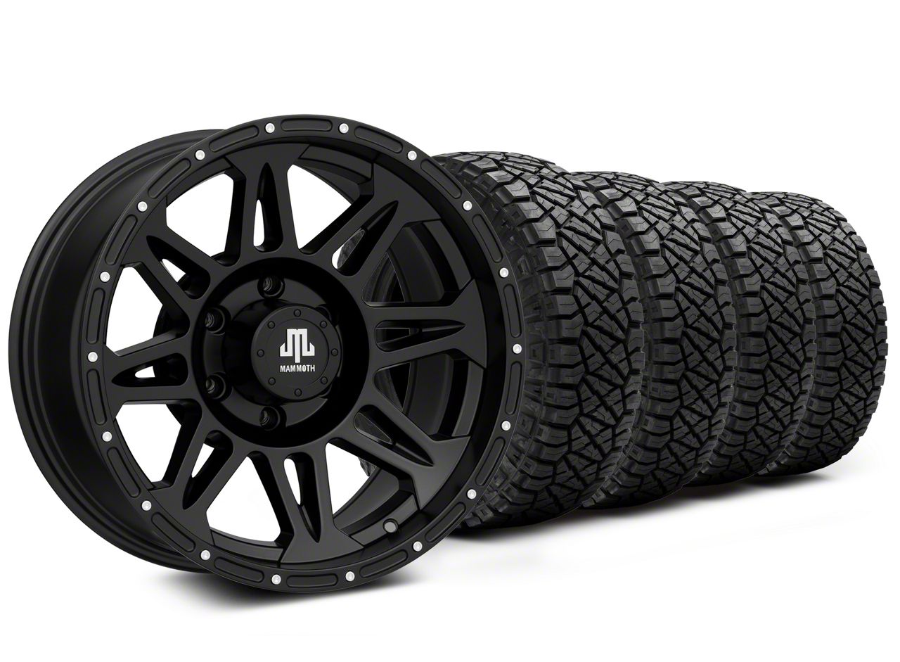 Mounted and Balanced Wheel and Tire Kit. This wheel and tire combo kit features (4) 18x9 Mammoth Split-8 Beadlock Matte Black 6-Lug Wheels and (4) NITTO All-Terrain Ridge Grappler A/T 275/70R18 tires that have been put together into an easy to buy kit that arrives to your door already mounted and balanced ready to be installed on your vehicle.