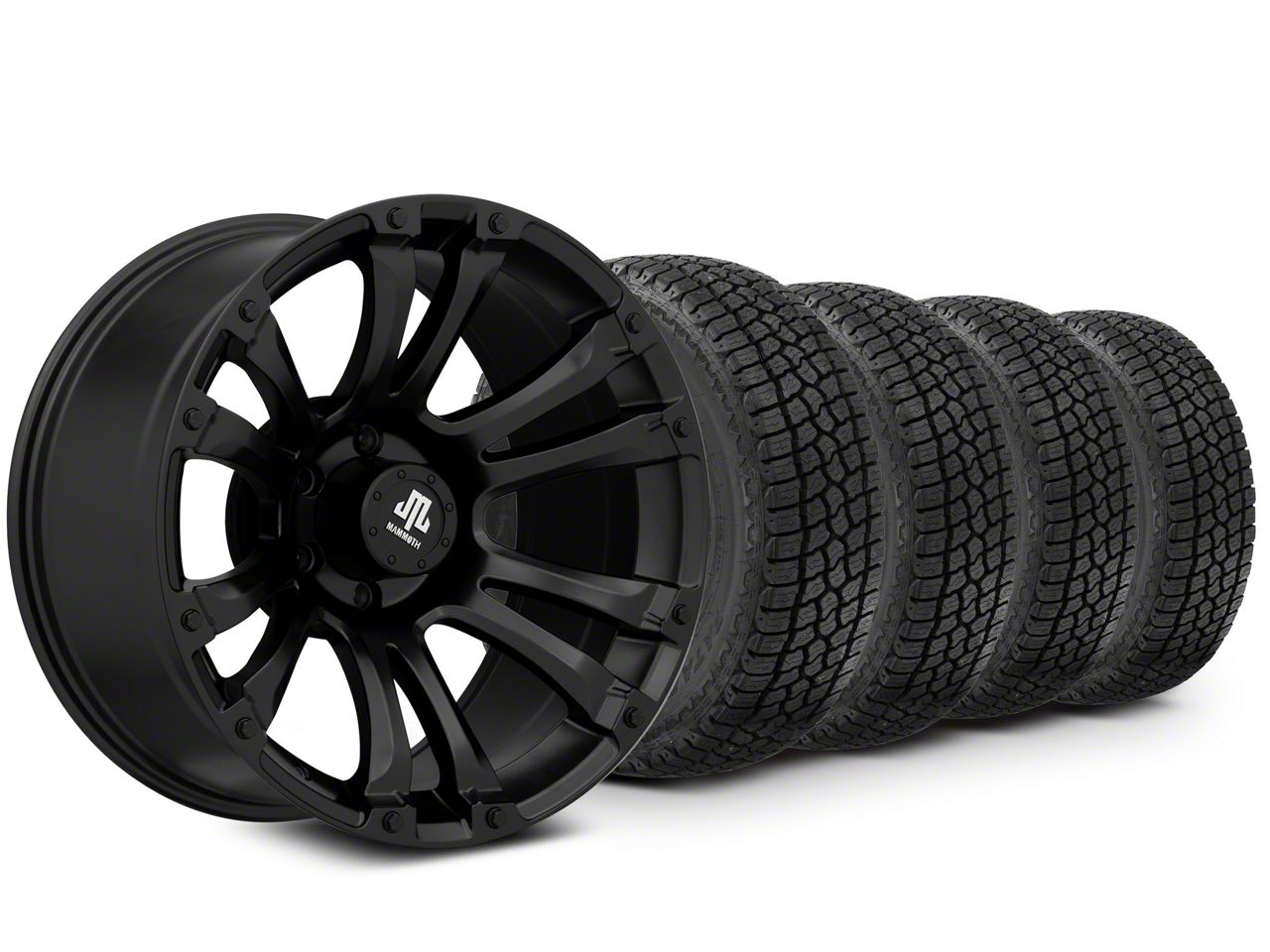 Matte Black Mammoth Madness Wheel. Mammoth's Madness Style Wheel offers rugged off-road styling with its split 6-spoke design and simulated hardware accents around the circumference of the lip. This Wheel is completed in a high quality, clear coated, matte black finish for an aggressive appearance that can withstand the hazards of everyday driving - including road chips and pitting.