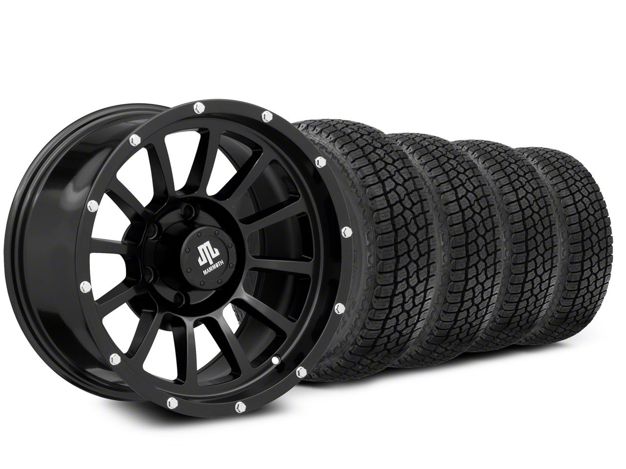 Satin Black Mammoth SP12 Wheel. Mammoth's SP12 Style Wheel features 12 equally spaced windows/spokes with simulated bead lock bolt accents around the circumference of the lip for rugged good looks. This Wheel is completed in a high quality, clear coated, satin black finish for an aggressive appearance that can withstand the hazards of everyday driving - including road chips and pitting.