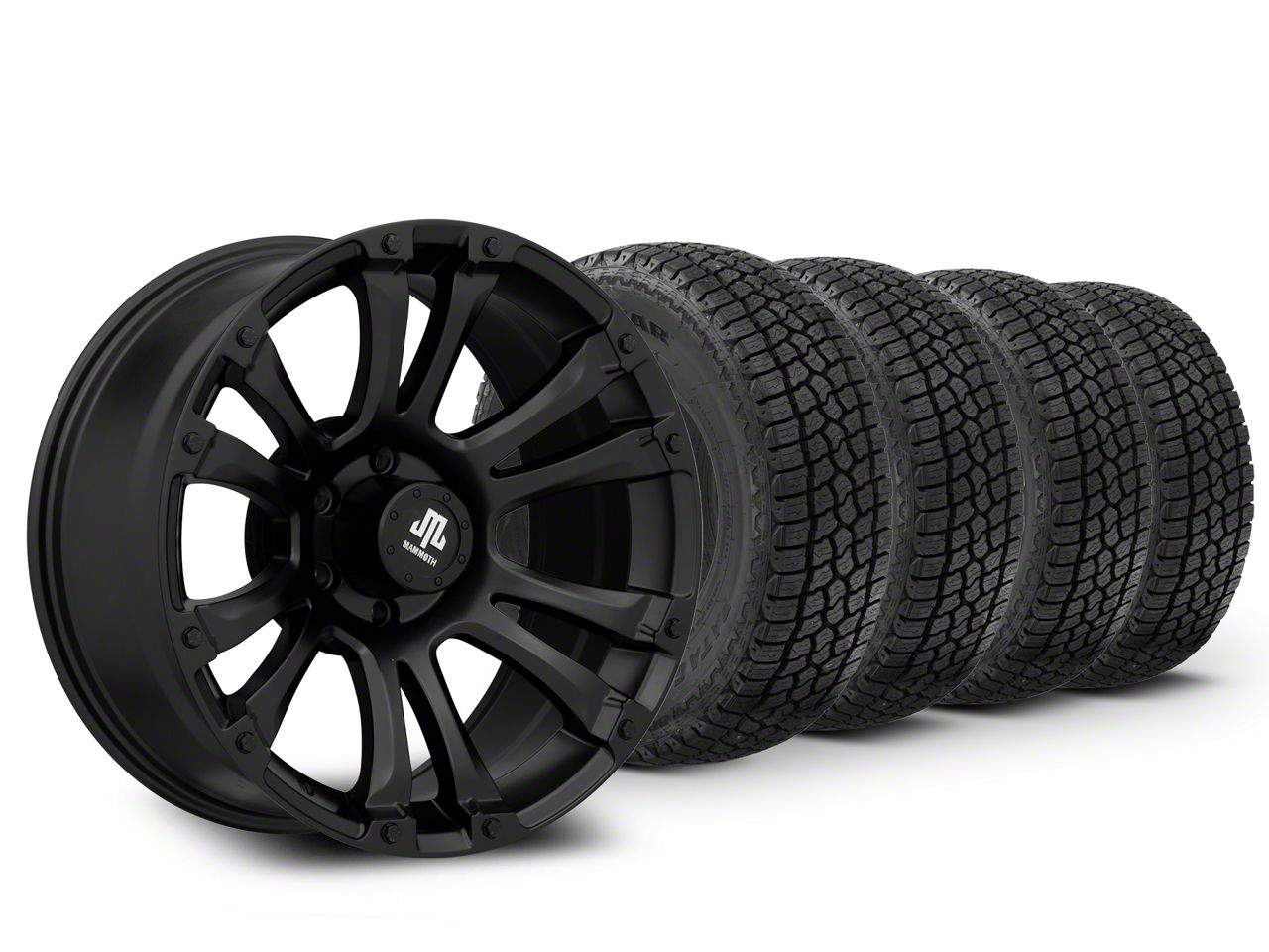 Mounted and Balanced Wheel and Tire Kit. This wheel and tire combo kit features (4) 20x9 Mammoth Madness Matte Black Wheels and (4) Milestar Patagonia AT/R All-Terrain 32" - 275/55R20 tires that have been put together into an easy to buy kit that arrives to your door already mounted and balanced ready to be installed on your vehicle.