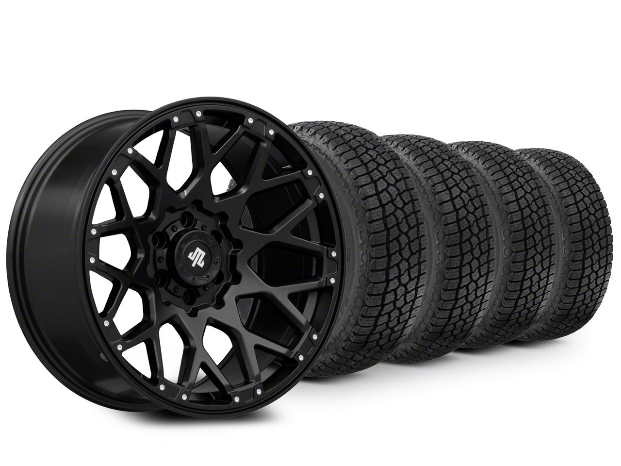 Mounted and Balanced Wheel and Tire Kit. This wheel and tire combo kit features (4) 20x9 Vex Satin Black Machined 6-Lug Wheels and (4) Milestar All-Terrain Patagonia AT/R 275/60R20 tires that have been put together into an easy to buy kit that arrives to your door already mounted and balanced ready to be installed on your vehicle.