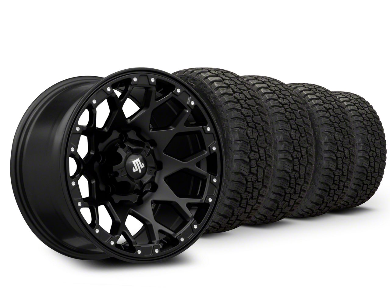 Mounted and Balanced Wheel and Tire Kit. This wheel and tire combo kit features (4) 17x9 Mammoth Vex Satin Black Machined Wheels and (4) Mickey Thompson Baja Boss A/T 33" - 285/70R17 tires that have been put together into an easy to buy kit that arrives to your door already mounted and balanced ready to be installed on your vehicle.