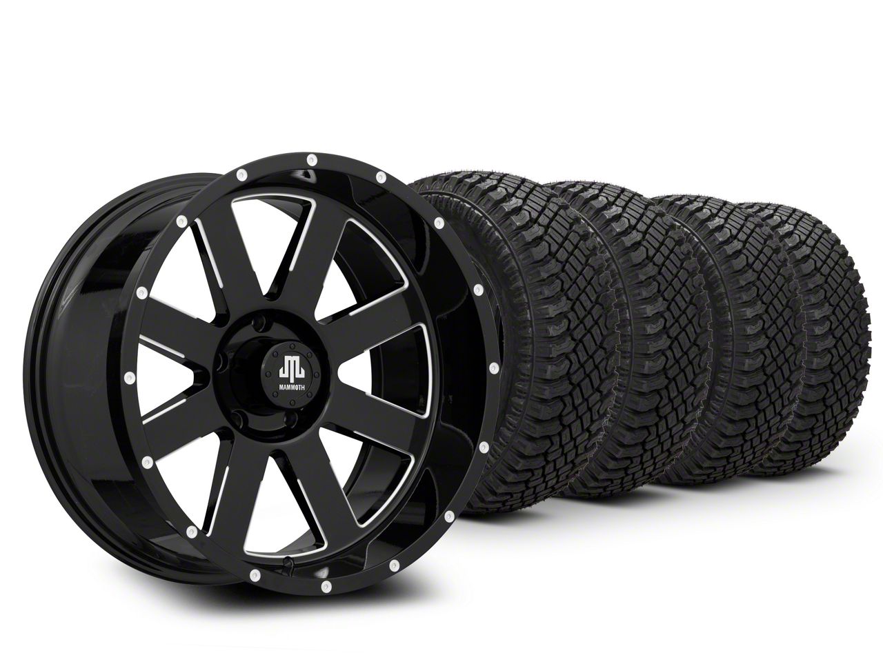 Mounted and Balanced Wheel and Tire Kit. This wheel and tire combo kit features (4) 20x10 Mammoth Horde Beadlock Gloss Black Machined Wheels and (4) Atturo Trail Blade X/T Multi-Terrain 33" - 305/55R20 tires that have been put together into an easy to buy kit that arrives to your door already mounted and balanced ready to be installed on your vehicle.