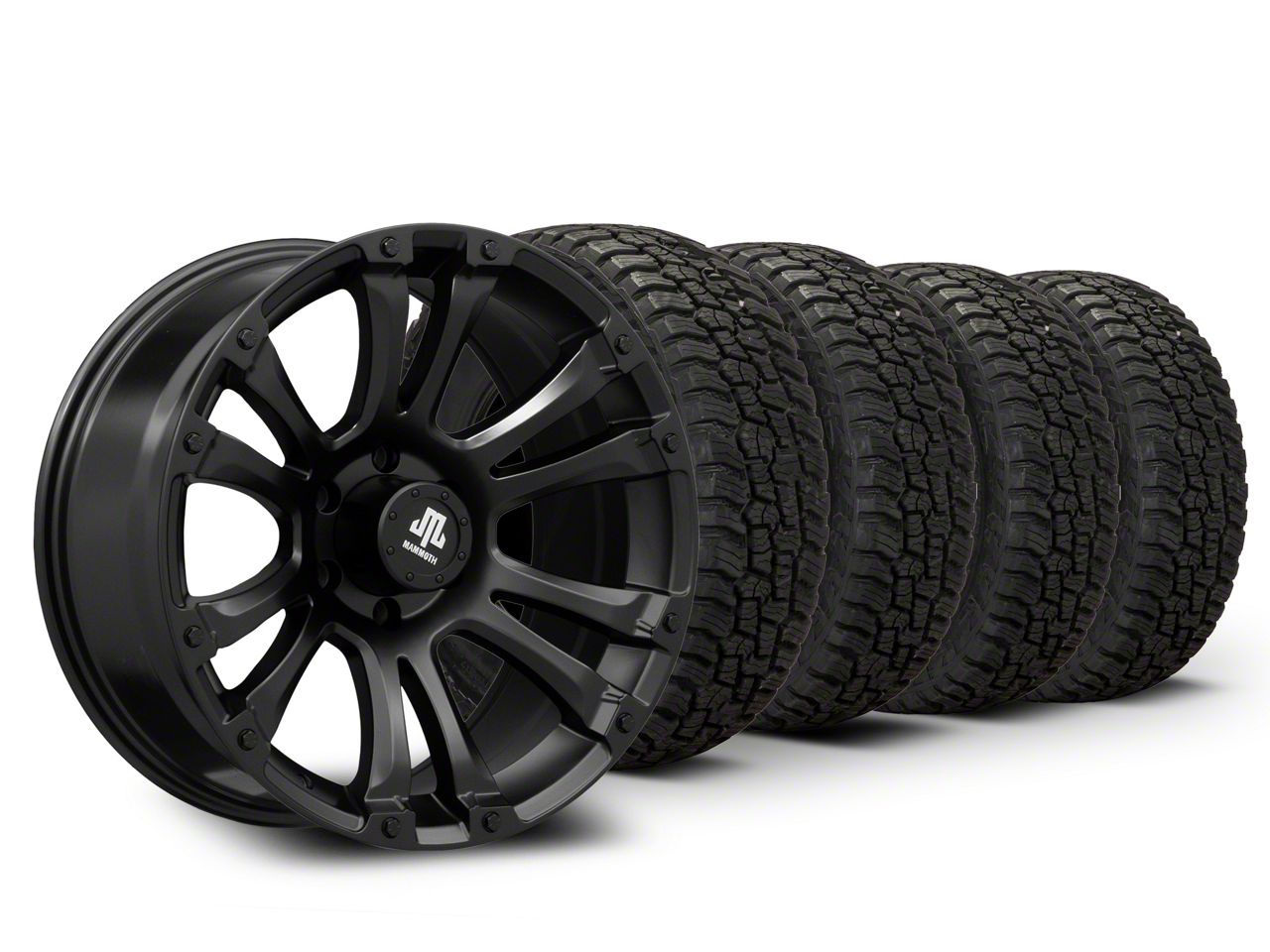 Mounted and Balanced Wheel and Tire Kit. This wheel and tire combo kit features (4) 20x9 Mammoth Madness Matte Black Wheels and (4) Mickey Thompson Baja Boss A/T 33" - 275/60R20 tires that have been put together into an easy to buy kit that arrives to your door already mounted and balanced ready to be installed on your vehicle.