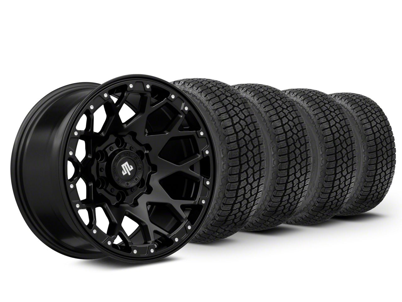Mounted and Balanced Wheel and Tire Kit. This wheel and tire combo kit features (4) 20x9 Mammoth Vex Satin Black Machined 6-Lug Wheels and (4) Milestar Patagonia AT/R All-Terrain 33" - 275/60R20 tires that have been put together into an easy to buy kit that arrives to your door already mounted and balanced ready to be installed on your vehicle.