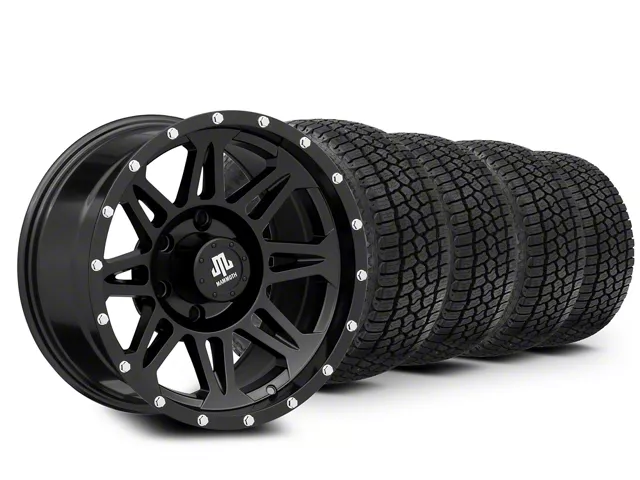 Mounted and Balanced Wheel and Tire Kit. This wheel and tire combo kit features (4) 17x9 Mammoth Split 8 6-Lug Wheels Satin Black and (4) Milestar All-Terrain Patagonia AT/R 285/70R17 tires that have been put together into an easy to buy kit that arrives to your door already mounted and balanced ready to be installed on your vehicle.