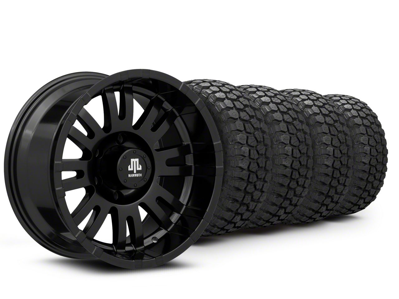 Mounted and Balanced Wheel and Tire Kit. This wheel and tire combo kit features (4) 17x9 Mammoth Krawler Satin Black 6-Lug Wheels and (4) Ironman Mud-Terrain All Country 285/70R17 tires that have been put together into an easy to buy kit that arrives to your door already mounted and balanced ready to be installed on your vehicle.