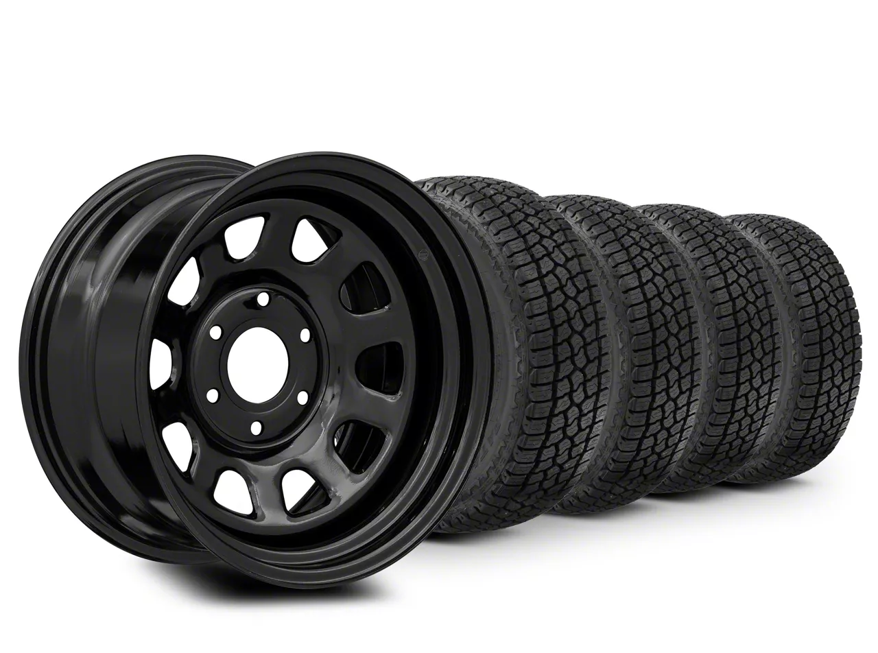 Mounted and Balanced Wheel and Tire Kit. This wheel and tire combo kit features (4) 17x9 Mammoth D Window Gloss Black 6-Lug Wheels and (4) Milestar All-Terrain Patagonia AT/R 33" - 285/70R17 tires that have been put together into an easy to buy kit that arrives to your door already mounted and balanced ready to be installed on your vehicle.