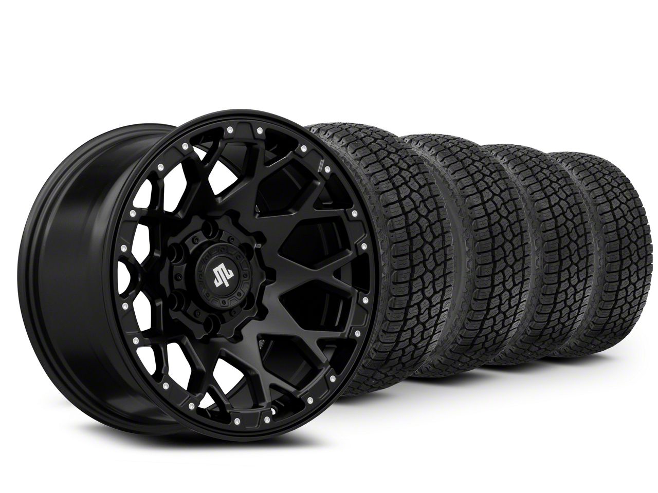 Mounted and Balanced Wheel and Tire Kit. This wheel and tire combo kit features (4) 17x9 Vex Satin Black Machined 6-Lug Wheels and (4) Milestar All-Terrain Patagonia AT/R 285/70R17 tires that have been put together into an easy to buy kit that arrives to your door already mounted and balanced ready to be installed on your vehicle.