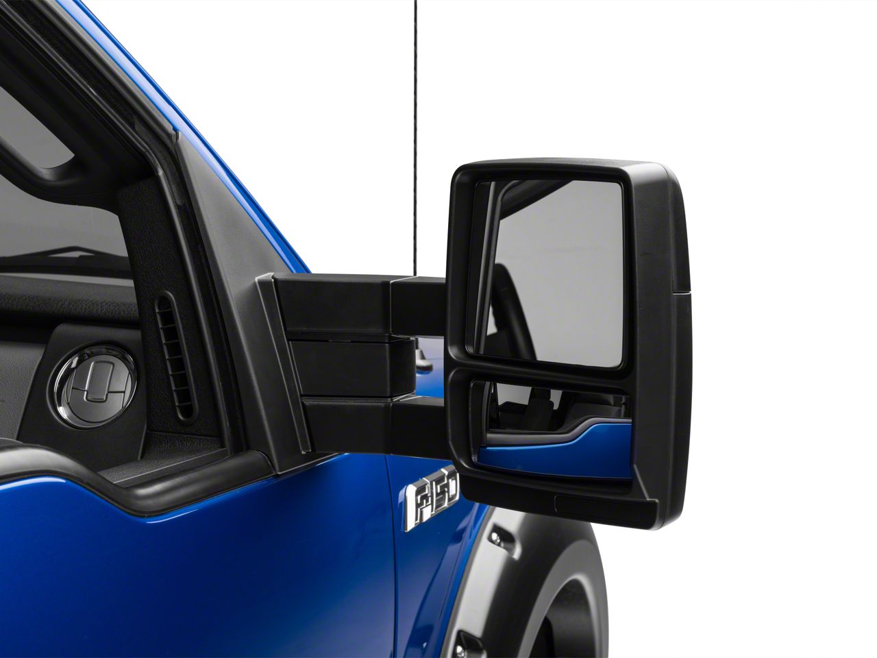 Enhanced Visibility. Ensure safe driving conditions by investing in a pair of Manual Extending Non-Powered Adjustable Towing Mirrors for your F-150. These mirrors easily eliminate hazardous blind spots that occur when towing long or wide loads. They feature a simple telescoping design that allows easy adjustments for a perfect view when backing up or cruising the highway.