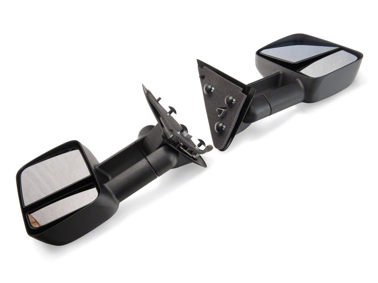 Increased Visibility. Featuring sturdy reinforcement brackets that prevent vibration during driving for a clearer view, the RedRock 4x4 Manual Extending Towing Mirrors are finished with a tough, sturdy black casing. The ample mirror, which features both a convex and wide-angle section, gives you an excellent rearward view when towing or simply in need of extra rearward vision.