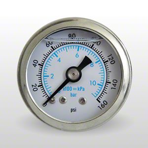 Marshall Instruments WS White PSI/kPa/Bar Dial 1.50-Inch Liquid Filled Mechanical Gauge; 0-160 PSI (Universal; Some Adaptation May Be Required)