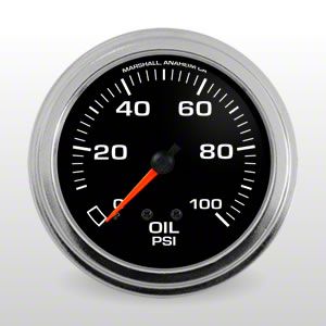 Precision Oil Pressure Monitoring. The Marshall Instruments COMP II Black Dial 2-5/8-Inch Oil Pressure Gauge; 0-100 PSI provides accurate and reliable measurement of engine oil pressure, essential for maintaining engine health and performance. This gauge is ideal for street, sport compact, strip, and oval track vehicles, allowing drivers to monitor vital engine data with confidence.