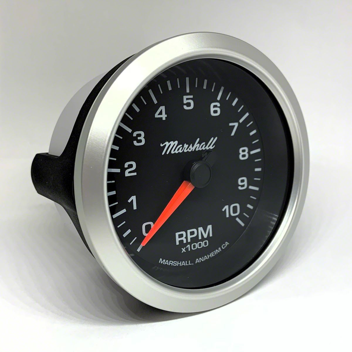 Marshall TachometersMarshall in-dash tachometers are available in 3-3/8" and 5" sizes with a variety of dial colors and bezel options. Marshall tachometers come preprogrammed for 4 pulses per revolution (PPR) and can be easily programmed to work with signals ranging from 0.5 PPR to 6 PPR (1-12 cylinders). Marshall tachometers work with a wide variety of ignition types including standard inductive coil (-), HEI, and electronic ignition systems. Marshall performance in-dash tachometers feature high-speed stepper motor movement, LED through-the-dial lighting, red illuminated pointer, and easy-install u-clamp.Made in the U.S.A.This product is proudly made in Anaheim, California USA.Through-Dial LED LightingMarshall gauges feature through-the-dial LED lighting and glowing 3D pointer for a cool look and easy viewing at night.