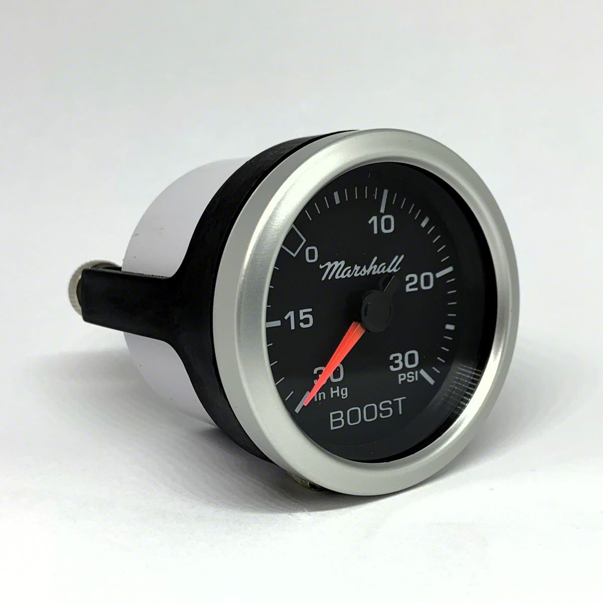 Marshall Instruments SCX Black Dial 2-1/16-Inch Vacuum/Boost Gauge; 0-30 PSI; Silver Aluminum Bezel (Universal; Some Adaptation May Be Required)