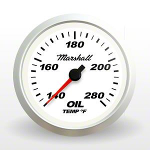 Gauge Type: Oil TemperatureGauge Range: 140-280FSender Included: 9204Marshall Temperature GaugesMarshall 2-1/16" temperature gauges are available in a variety of dial colors and bezel options. Marshall temperature gauges feature a precise stepper motor movement and through dial LED backlight with illuminated pointer for easy viewing at night.Marshall Comp II LED and SCX temperature gauges include temperature sender, u-clamp, connectors and instructions. SCX water and transmission temperature gauges use the 9201 temperature sender. Comp II LED temperature gauges and the SCX 140-280F oil temperature gauges use the 9204 temperature sender.Made in the U.S.A.This product is proudly made in Anaheim, California USA.Through-Dial LED LightingMarshall gauges feature through-the-dial LED lighting and glowing 3D pointer for a cool look and easy viewing at night.