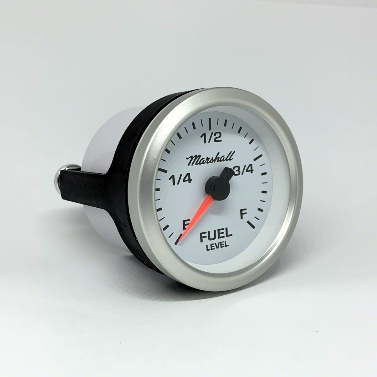 Marshall Fuel Level GaugesMarshall 2-1/16" fuel level gauges are available in a variety of dial colors and bezel options. Marshall fuel level gauges feature a precise stepper motor movement and through dial LED backlight with illuminated pointer for easy viewing at night.Marshall Comp II LED and SCX fuel level gauges can be programmed to work with the following fuel level sender ranges:0-90 Ohm73-10 Ohm240-33 Ohm20-150 Ohm0-30 OhmMade in the U.S.A.This product is proudly made in Anaheim, California USA.Through-Dial LED LightingMarshall gauges feature through-the-dial LED lighting and glowing 3D pointer for a cool look and easy viewing at night.