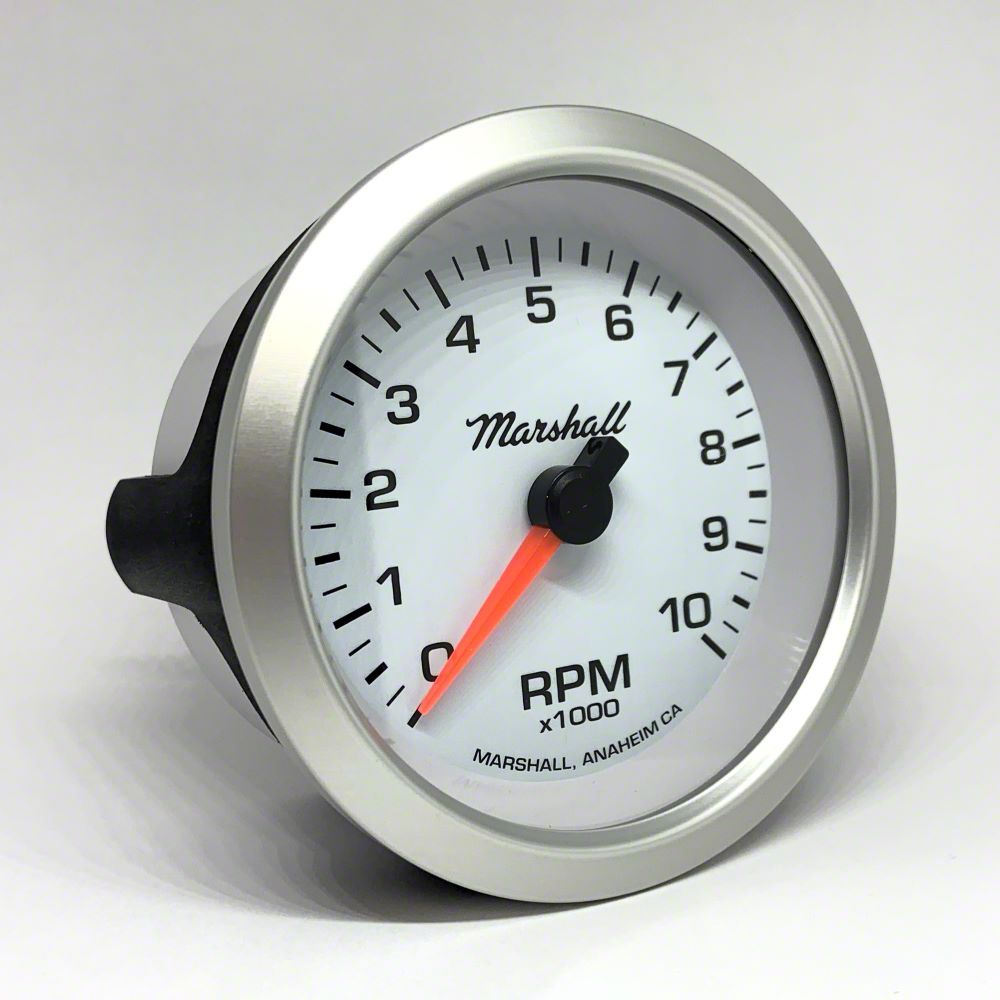 Marshall Instruments SCX White Dial 3-3/8-Inch In-Dash Tachometer; 0-10000 RPM; Silver Aluminum Bezel (Universal; Some Adaptation May Be Required)