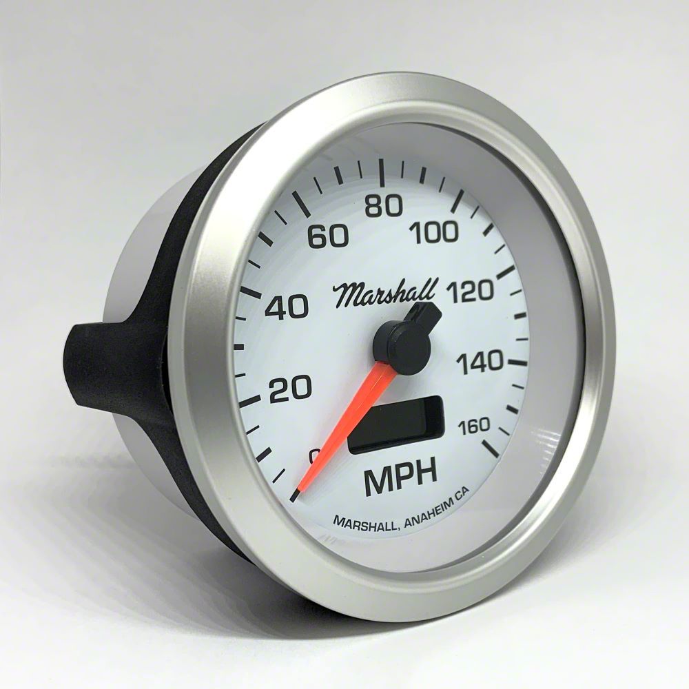 Marshall Instruments SCX White Dial 3-3/8-Inch Electric Programmable Speedometer; 0-160 MPH; Silver Aluminum Bezel (Universal; Some Adaptation May Be Required)