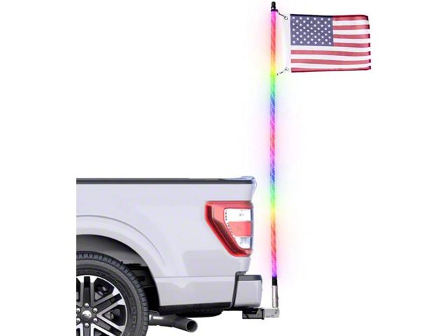 Lighted Flag Display Upgrade. The Master Tailgaters 5-Foot Swirl LED Flag Pole with Hitch Mount delivers eye-catching style and visibility to any vehicle. Designed with swirling multi-color LED effects and remote-control convenience, it's perfect for tailgating, parades, camping, or off-road adventures where flair meets function.