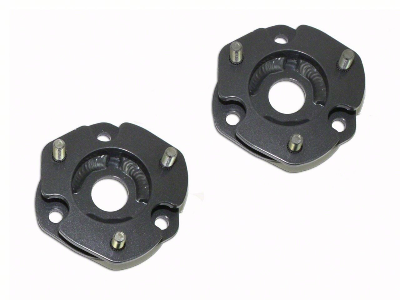 Strong Steel Construction. Max Trac’s front strut spacers are fabricated from strong 1/4-inch steel plates. The top plates have been stamped and each spacer has been welded from bolt hole-to-bolt hole for extra strength. A high-quality grey powder coat finish protects the spacers from rust and corrosion.