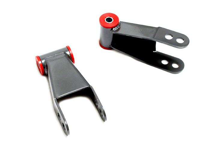Upgrade your Ford F-150's Stance. This Max Trac 2 in. Rear Lowering Shackles is designed to offer a perfect replacement for your OEM parts. It lowers the rear of your truck with an incredible 2 inches giving it an aggressive stance. The shackles allow you to fine-tune the appearance of your Ford F-150 without compromising the quality of the factory ride. This durable product is designed to enhance a custom look that's effortlessly achieved through a quick bolt-on installation.