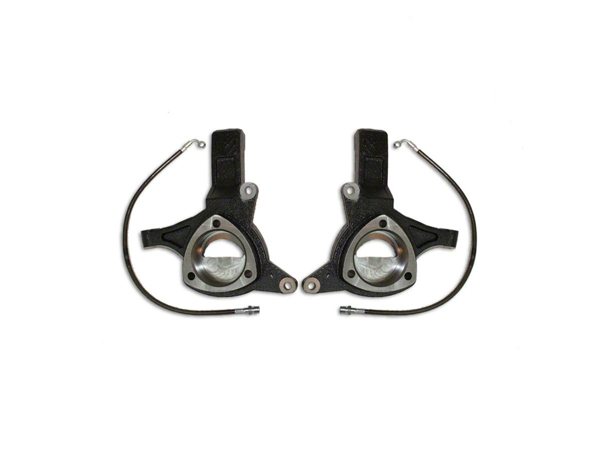 Get the Right Off-Road Control. Getting the right ground clearance to stampede the off-road boulders is now easy; thanks to the newly designed Max Trac 5" Front Lift Spindles w/ Extended Brake Lines. If you're the sort who love an elevated truck stance, then these spindles will allow you to install up to 33" tires w/ 17" larger wheels. Also, they are a simple lift modification with a mere bolt-on process.