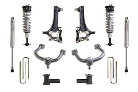 Hard-Line Construction. The Max Trac 7.50-Inch Front / 5-Inch Rear Suspension Lift Kit with Fox Shocks is made of exemplary billet aluminum and cast steel components that have been thoroughly CAM-milled and coated in a 2-phase powder primer finish that helps hinder rust development.