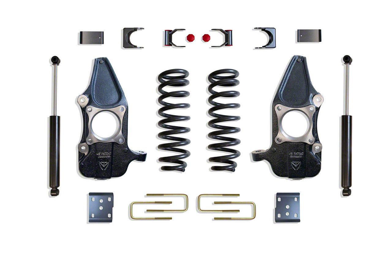 Optimized Dampening. Rock a tougher look for your F-150 with this Max Trac Lowering Kit with Max Trac Shocks; 3-Inch Front / 5-Inch Rear. Sporting a twin-tube gas-charged design, it features greater responsiveness and stress capacity than most other shocks. It is adjustable to better suit your needs and the terrain you drive in.
