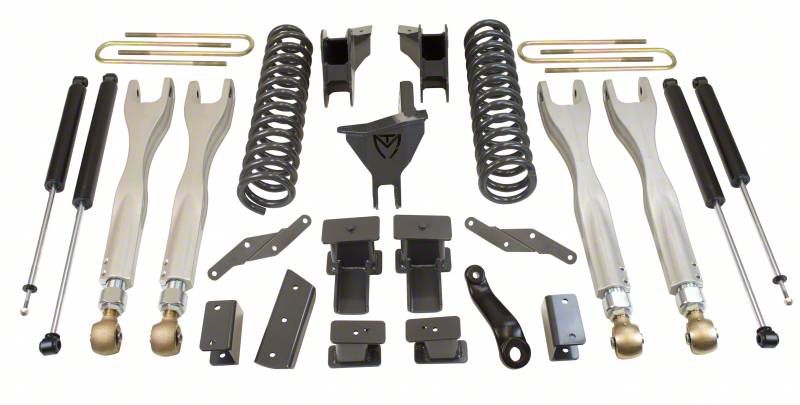 Go Off-Road With Confidence. This Max Trac 6-Inch Forged 4-Link Suspension Lift Kit with Shocks provides an excellent bolt-on lift solution that's fit for rough off-road conditions. The forged aluminum 4 Links has a durable anodized finish and features spherical rod ends that allow for on-vehicle adjustability. The kit also comes with radius arm drop brackets, coil springs, Max Trac shocks, and rear lift blocks.