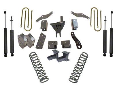 Reliable Support. The Suspension Lift Kit comes with everything you need to lift your vehicle, including extended radius arms, front lift coils, rear lift blocks, extended brake lines, Max Trac shocks, and all necessary hardware for installation. The kit includes durable, reinforced radius arms designed to replace your truck's factory arms. These heavy-duty arms are engineered to provide optimal suspension geometry and improved articulation, ensuring superior handling both on and off the road.