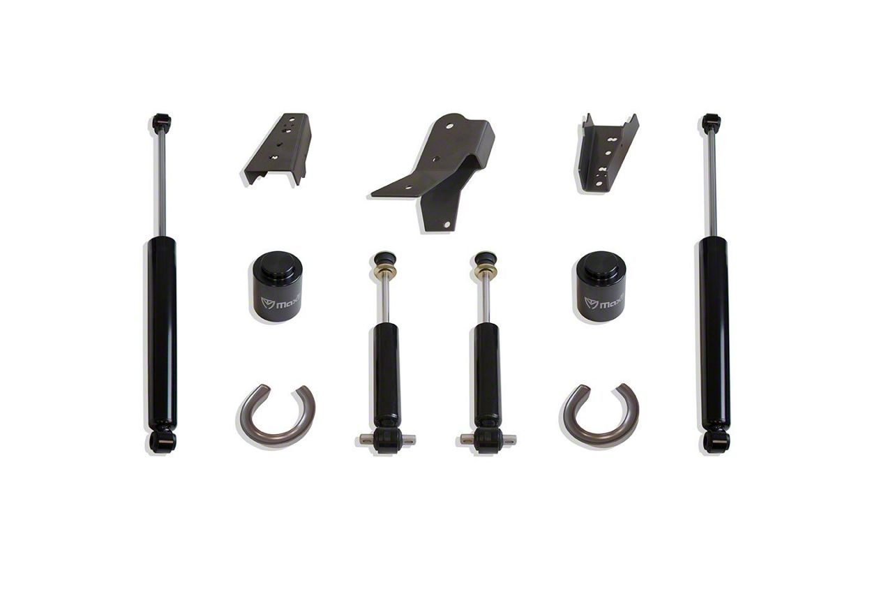 MaxTrac Shocks. The MaxTrac 2-Inch Front / 4-Inch Rear Lift Kit comes with front and rear MaxTrac shocks. They will provide you with the control and comfort you want and need from your truck’s suspension.