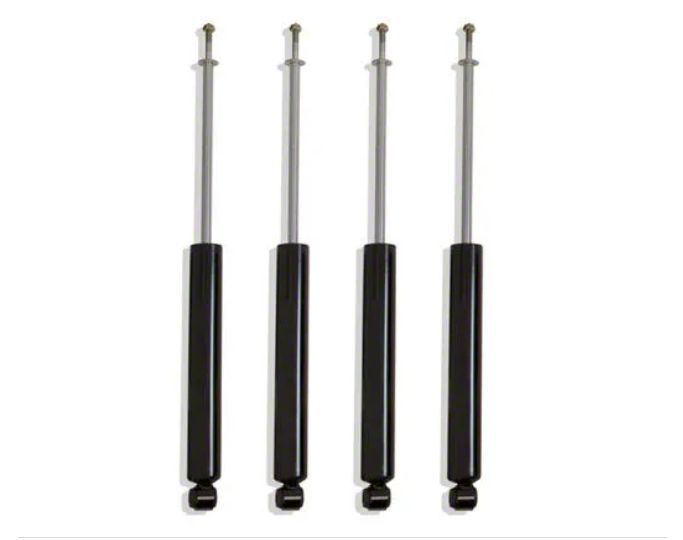 Installation. These shocks are designed for an easy, bolt-on installation, requiring no drilling, modification, or cutting. Their vehicle-specific properties ensure a straightforward and precise fit.