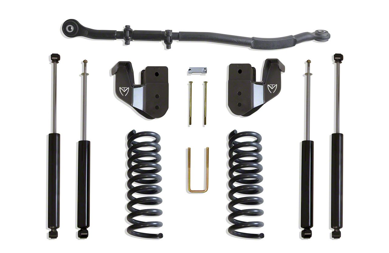 MAX TRAC SUSPENSION’S KIT# K947325 IS A COMPLETE 2.5″ LIFT KIT INCLUDING DIESEL COILS, RADIUS ARM BRACKETS, ADJ TRAC BAR & FRONT/REAR MAX TRAC SHOCKS