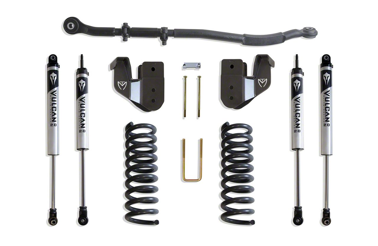 MAX TRAC SUSPENSION’S KIT# K947325V IS A COMPLETE 2.5″ LIFT KIT INCLUDING DIESEL COILS, RADIUS ARM BRACKETS, ADJ TRAC BAR & FRONT/REAR VULCAN SERIES SHOCKS