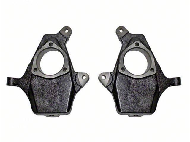 OEM Quality Spindles. The Sierra 1500 2-Inch Front Lowering Spindles will allow you to lower your vehicle without sacrificing comfort or stability. These spindles offer 2-Inches of drop height, and they improve your vehicle’s headline and the steering system performance. These lowering spindles will reduce body roll and eliminate the extra space between the tires and the fender wall.