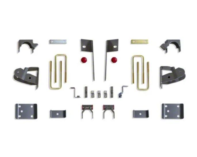 Lowering of 4 Inches. Made for the GMC Sierra 1500 models, this Max Trac Flip Kit comes in a textured black and raw brass finish. Built as a rear model, this flip kit includes axle relocators, bump stops, hangers, shackles, and spring plates. This kit offers a solid 4 inches of rear lowering for a more stable and lowered ride.