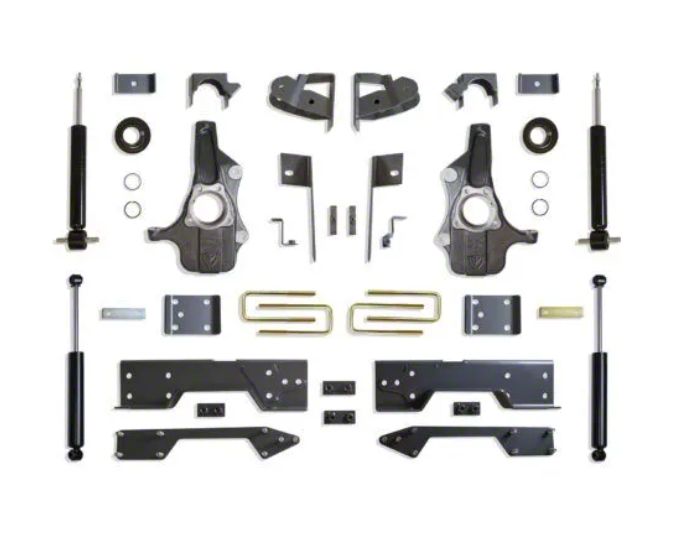 Construction and Appearance. This kit includes premium 2-inch drop spindles, adjustable drop struts, and MaxTrac rear shock absorbers, ensuring durability and excellent performance.