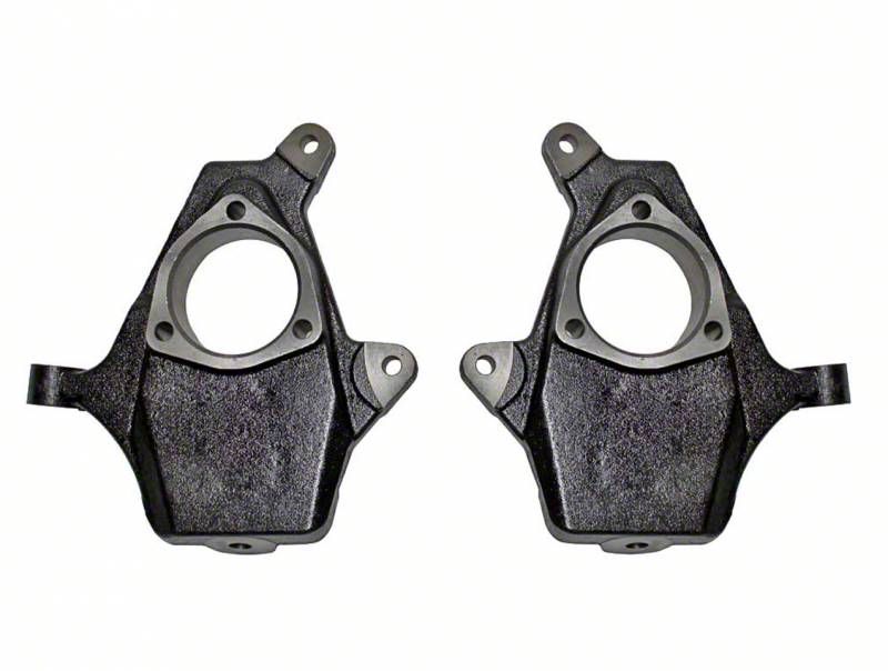 Malleable Iron Construction. The Max Trac 2-Inch Front Lowering Spindles are made of gravity cast iron for a rugged and beefy constitution that is capable of taking on 17-inch wheels and higher. These spindles have also been spray-coated with a textured gloss black finish that helps lower the risk of rust and deterioration.