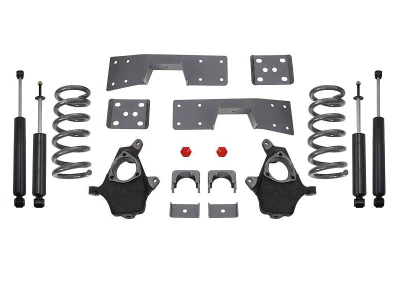 Equipped with Lowering Coil Springs. This kit is equipped with lowering coil springs. Compared to your factory springs, these types are designed to be shorter so that your truck can sport that low ride style that's reminiscent of retro trucks. Aside from adjusting your vehicle’s ride height, these coil springs work together with your shock absorbers to support a comfortable ride.